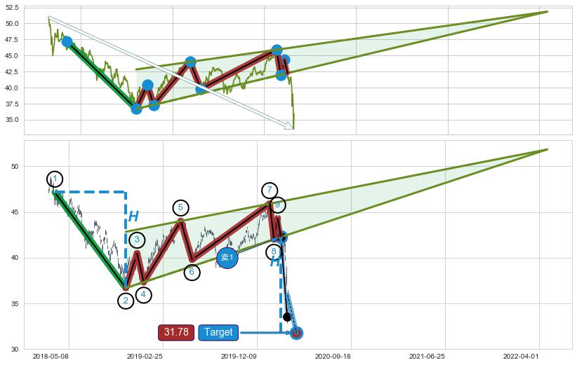 2019-05-23: 第一阻力位39.65有效抑制了下跌浪,成功阻止了价格的继续下跌。