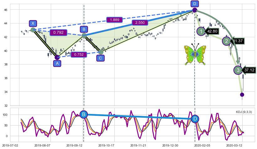 ➣ 已完成【蝴蝶】形态起点X: 2019-07-18, 终点D: 2020-01-17, 共128交易日