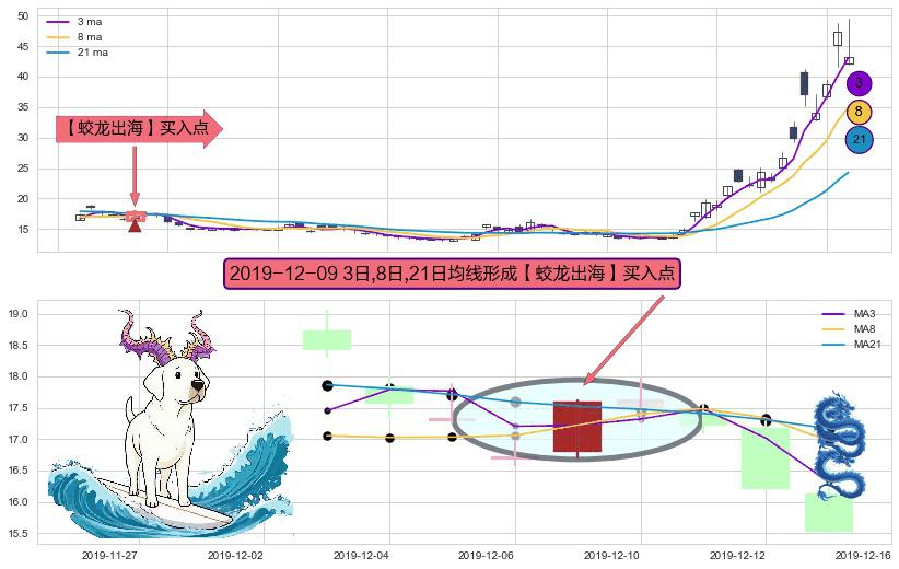⚀ 2019-12-09日显现 3日-8日-21日均线 【蛟龙出海】买入点 看多信号,后市看涨,买入