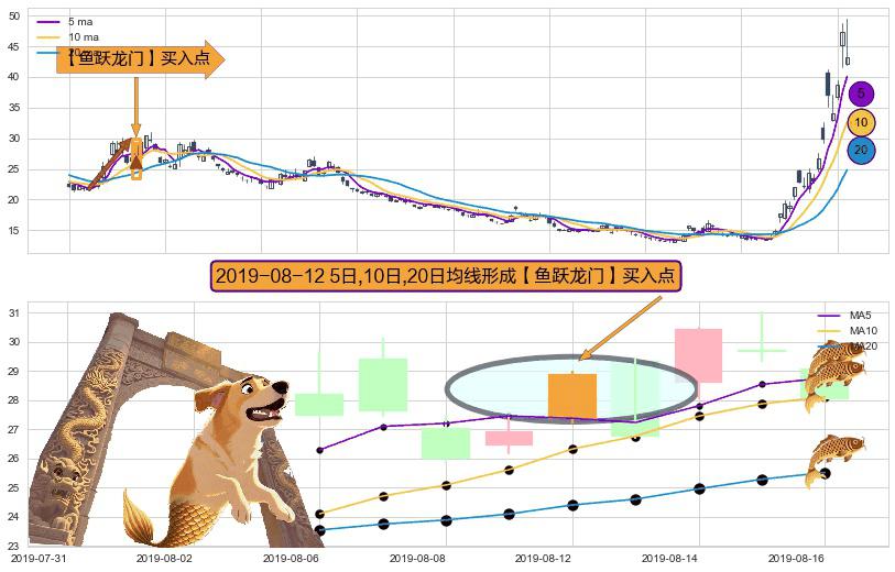 ⚀ 2019-08-12日显现 5日-10日-20日均线 【鱼跃龙门】买入点 看多信号,后市看涨,买入