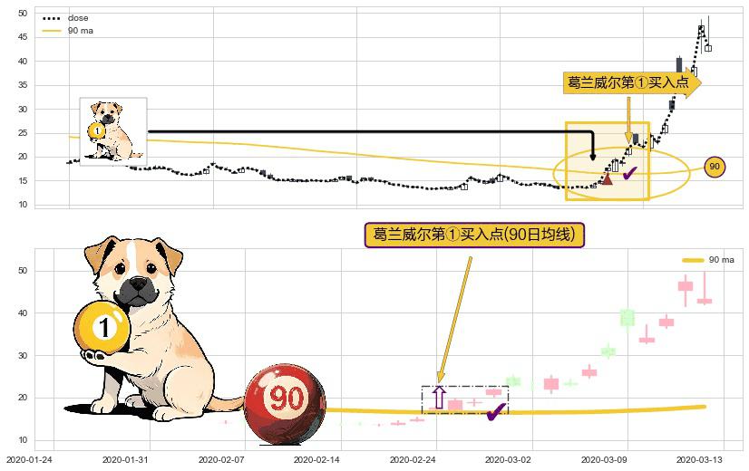 ⚀ 2020-02-24-日显现 葛兰威尔均线 90日均线 第买①入点 走势反转见底信号,后市看涨,买进信号