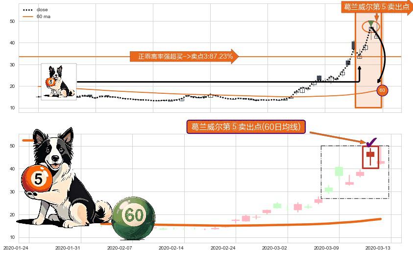 ⚀ 2020-03-12-日显现 葛兰威尔均线 60日均线 第⑤卖出点 上升趋势均值回复的短线回落信号,后市看跌,卖出信号