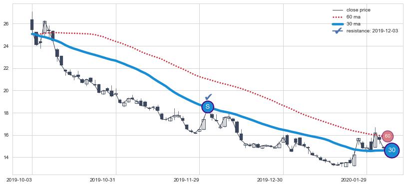 ⚁ MA60和MA90走势平行,且始终保持在短距离内,MA120始终在短中期均线上方,与短中期均线保持一定的距离,微微下行