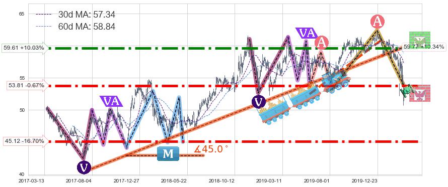 ➢ 【已达成】最小【反转】第一目标价格→(2020-02-28: 54.37 ), 后续继续【反转】下跌动力微弱,下跌较小