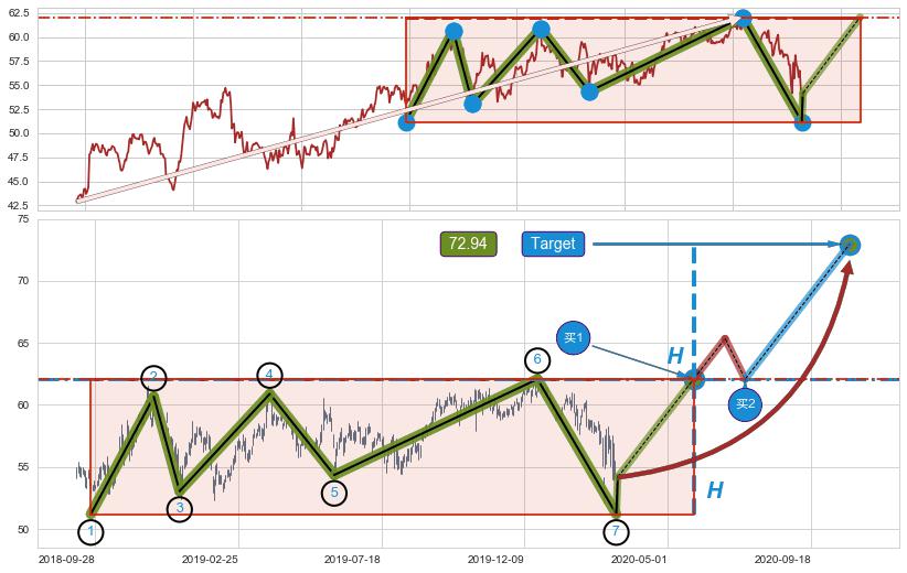 ➣ 最小中继整理涨幅→𝐇: 14.59 (𝐇旗杆的长度:旗杆起点→顶点)