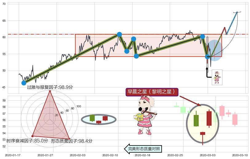 ♘ 阻力价格位61.07,可信任强度95.76%,距离最后交易2020-03-13形成的收盘价格54.17相差 +12.74%