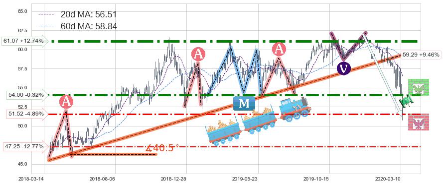 ♘ 支撑价格位51.52,可信任强度56.06%,距离最后交易2020-03-13形成的收盘价格54.17相差 -4.89%