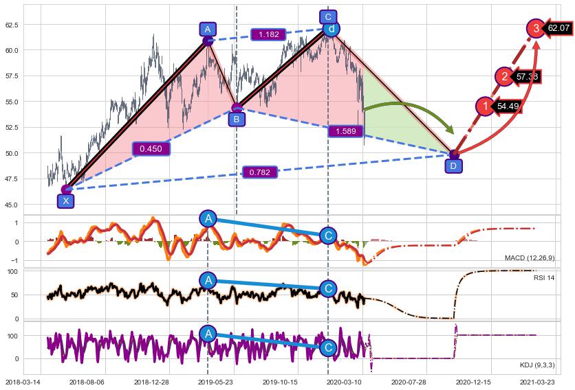 ➣ D点拟合预测价格49.80,距离最后交易收盘价格54.17相差 -8.07%