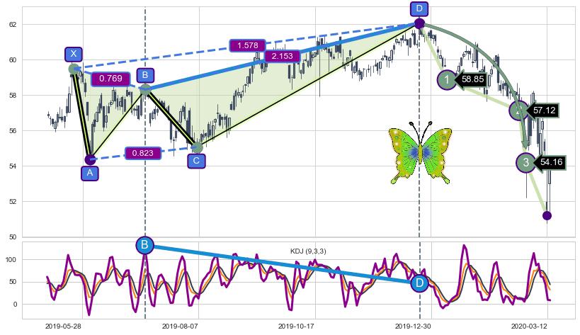 ➣ 已完成【蝴蝶】形态起点X: 2019-05-21, 终点D: 2019-12-20, 共150交易日