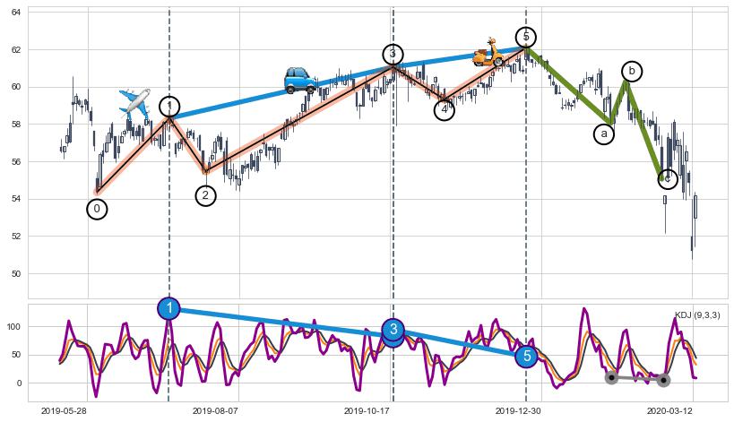 ➣ a,c调整浪MACD, RSI, KDJ走势都【未出现】背离,abc走势延续, 5浪反转概率增强