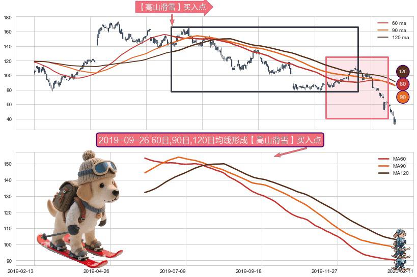 形态多维评估: ⚀ 2019-05-30日-2020-01-24日显现 60日-90日-120日均线 【高山滑雪】买入点 看多信号,后市看涨,买入