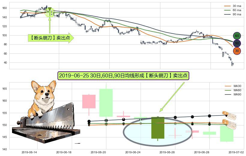 形态多维评估: ⚀ 2019-06-25日显现 30日-60日-90日均线 【断头铡刀】卖出点 看空信号,后市看跌,卖出