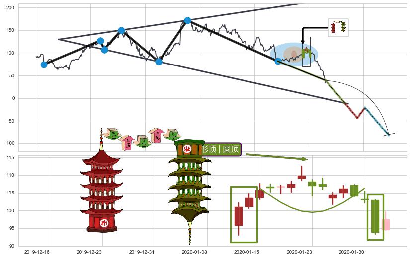 | 2 🅚:塔形顶 | 圆顶 ➕ 🎢:葛兰威尔第⑧卖出点卖出点信号形成后,猜想后续持续下行(趋势跟踪) ☞ 看空信号 ⇥ 【均线】交织【🅚线】⇥ 综合量化分数: 47 | > |