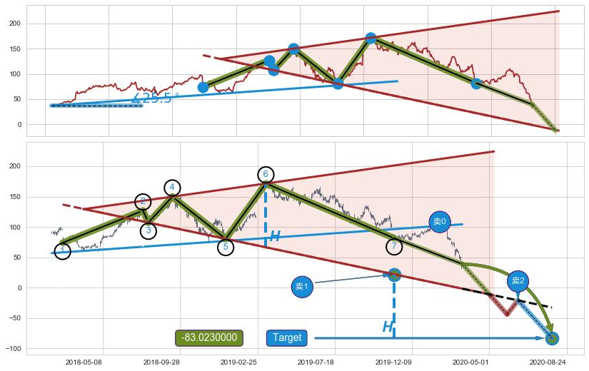 ➣ AI预测: 假定反转启动后, 第❸目标位置(2021-07-14, 171.57)