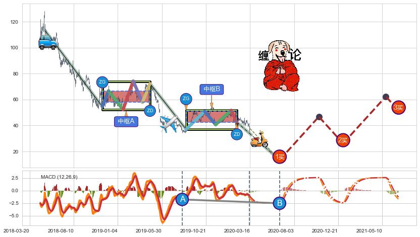 ➣ 【未完成】缠论 起点:2018-05-10, 完成第1中枢A,完成第2中枢B,到达2020-03-13