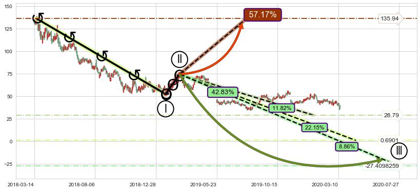 ➣ 大趋势循环浪继续向下概率42.83%