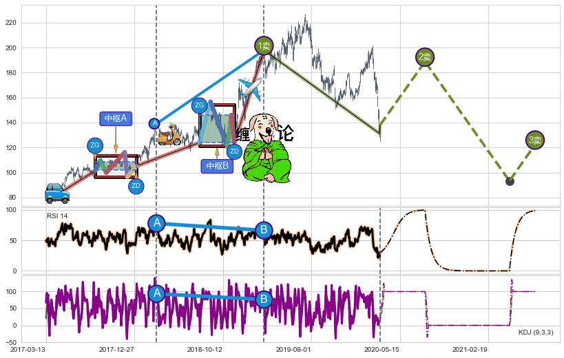 ➣ 【已完成】缠论 起点:2017-04-11,完成第1中枢A,完成第2中枢B,终点:2019-02-28,缠论共735交易日
