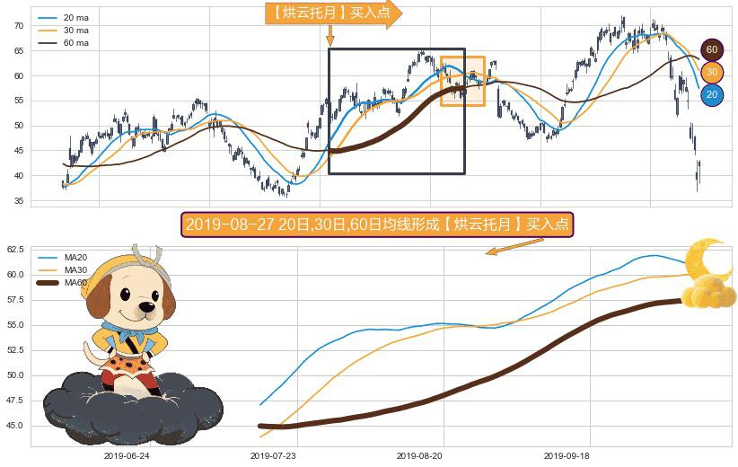 ⚀ 2019-07-16日-2019-10-09日显现 20日-30日-60日均线 【烘云托月】买入点 看多信号,后市看涨,买入