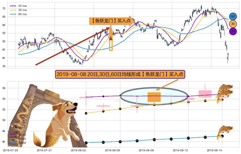 ⚀ 2019-08-08日显现 20日-30日-60日均线 【鱼跃龙门】买入点 看多信号,后市看涨,买入