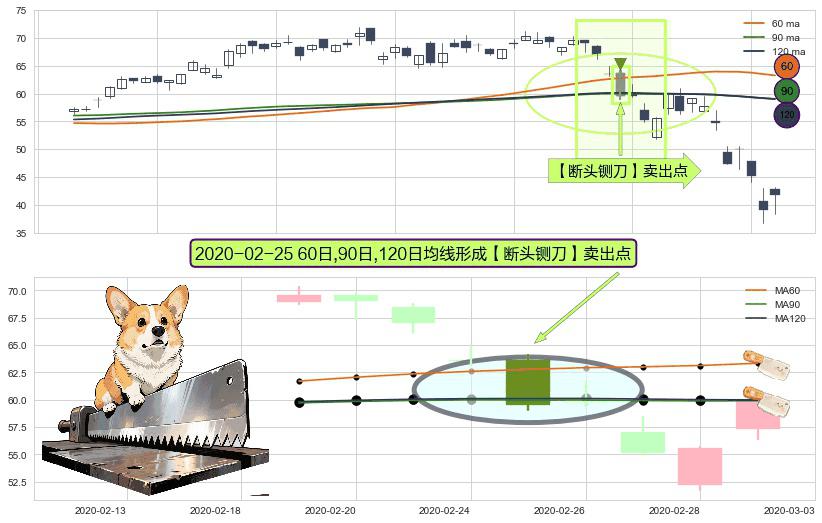⚀ 2020-02-25日显现 60日-90日-120日均线 【断头铡刀】卖出点 看空信号,后市看跌,卖出