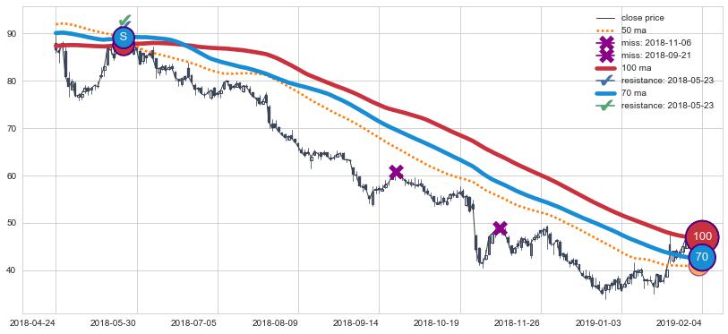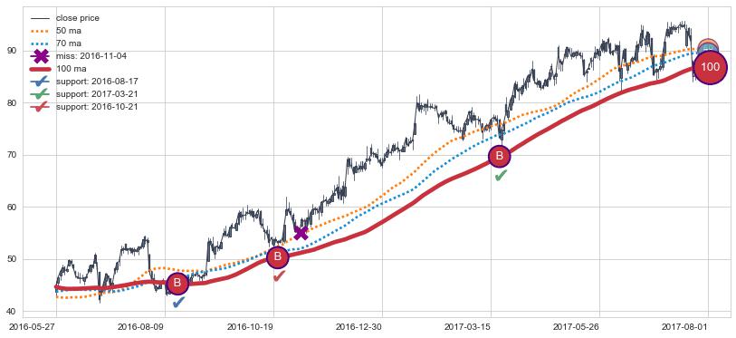 ➢ 最优均线组合共正确确认支撑阻力信号9处,正确确认率 60.00%
