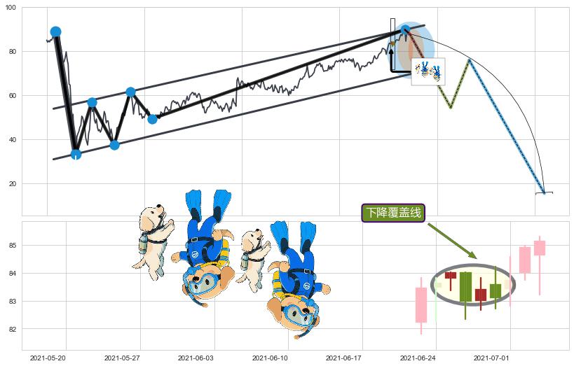 | 4 🅚:三空阳线 ➕ 📐:升旗形猜想突破点临近,临近关键支撑位,预期下沉突破下跌 ☞ 看空信号 ⇥ 【🅚线】交织【图形】⇥ 综合量化分数: 49 | > |