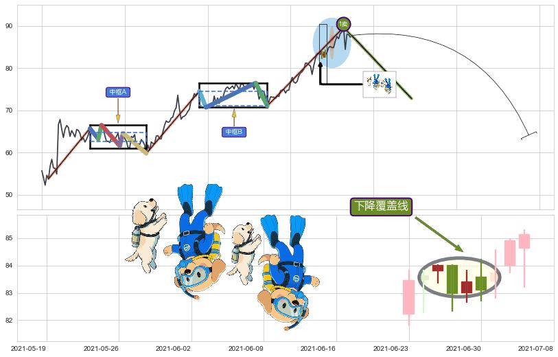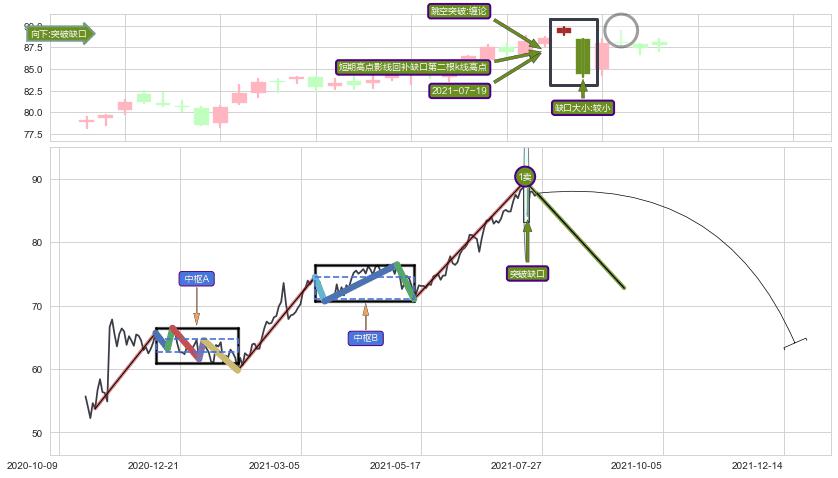 ➢ 高点影线(2021-07-21: 89.42 )→回踩→第二根k线高点(2021-07-19: 88.49 )