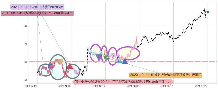 ♞ 第一支撑位60.24价格为60.24,其通过量化计算出的可信任强度为99.85%(可信度非常强)。