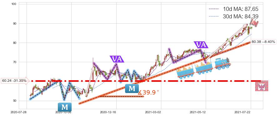♞ 10日均线:87.65,30日均线:84.39→ 快线>慢线