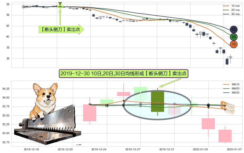 形态多维评估: ⚀ 2019-12-30日显现 10日-20日-30日均线 【断头铡刀】卖出点 看空信号,后市看跌,卖出
