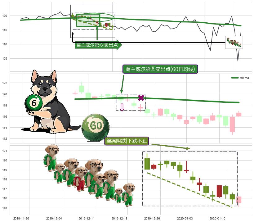 | 2 🅚:下跌抵抗 ➕ 🎢:葛兰威尔第⑥卖出点卖出点信号形成后,猜想后续上涨趋势反转下跌趋势(均值回复) ☞ 看空信号 ⇥ 【均线】交织【🅚线】⇥ 综合量化分数: 49 | > |