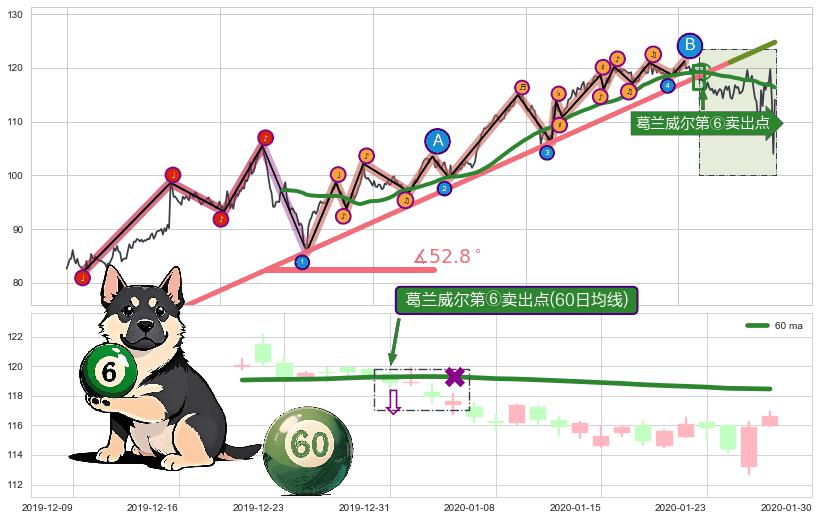 ➣ 2018-05-29-2020-01-31上升趋势存在反转[风险],其原上升趋势的支撑位(124.80)已破位[强阻力信号],原上升趋势角度: 52.8˚