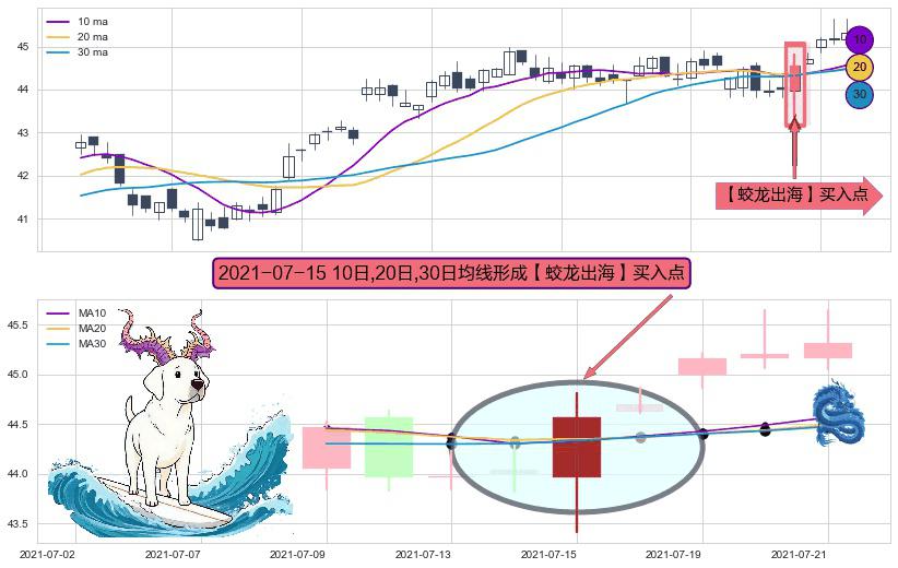 ⚀ 2021-07-15日显现 10日-20日-30日均线 【蛟龙出海】买入点 看多信号,后市看涨,买入