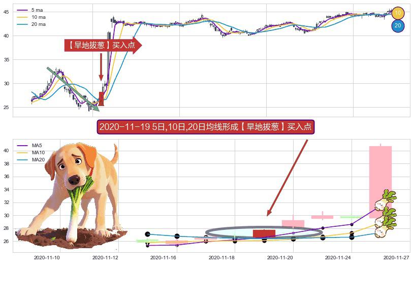 ⚀ 2020-11-19日显现 5日-10日-20日均线 【旱地拔葱】买入点 看多信号,后市看涨,买入