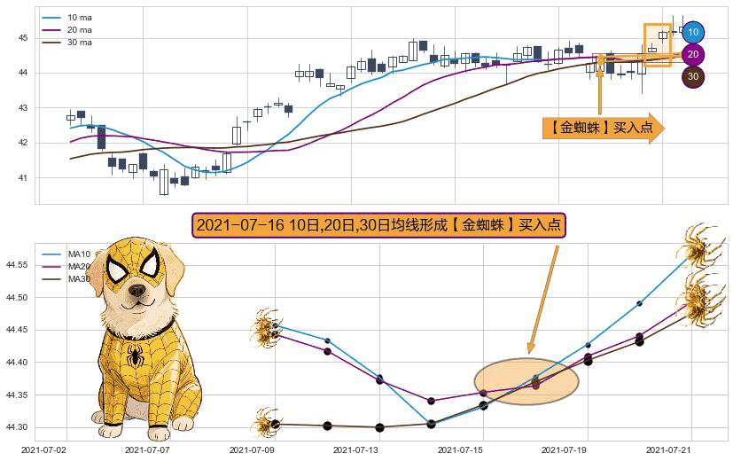 ⚀ 2021-07-16日显现 10日-20日-30日均线 【金蜘蛛】买入点 看多信号,后市看涨,买入