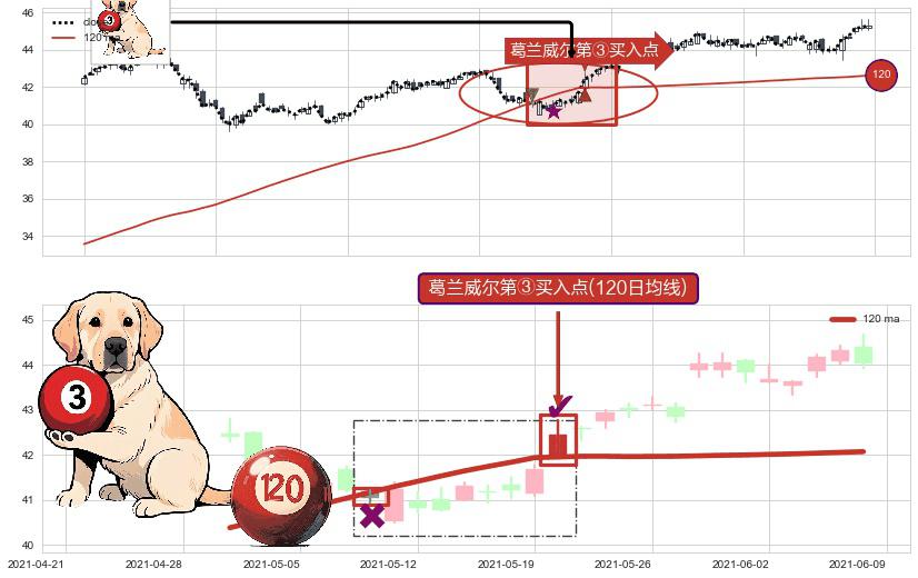 ⚀ 2021-05-20-日显现 葛兰威尔均线 120日均线 第③买入点 上升趋势的中继信号,后市看涨,买进信号