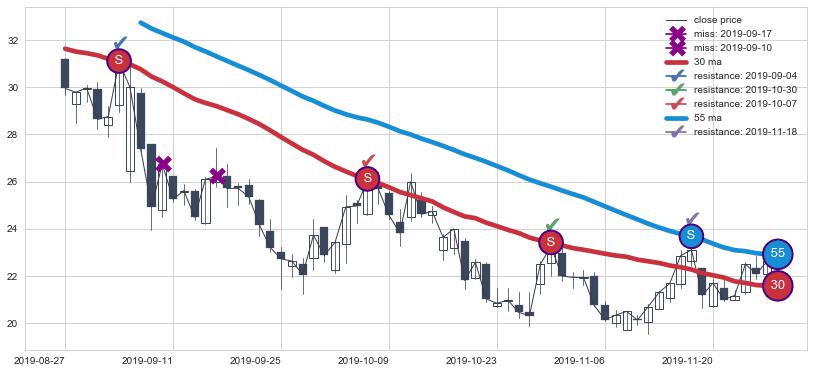 ➢ 最优均线组合共正确确认支撑阻力信号8处,正确确认率 72.73%