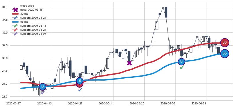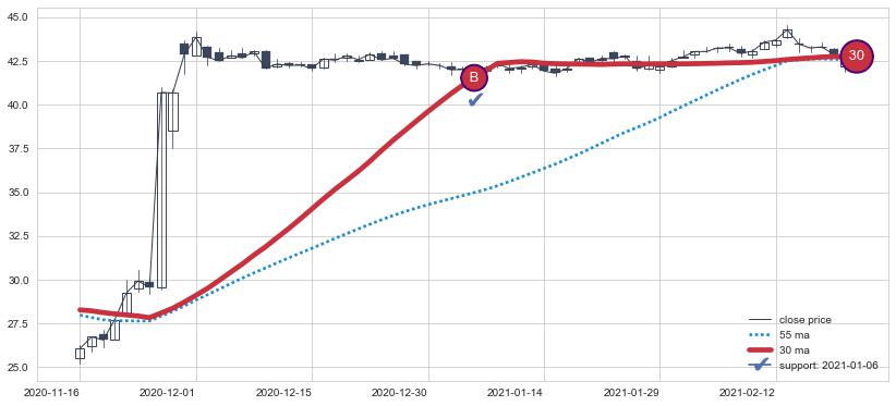 ⚄ 价格在均线获取支撑后再次向上反弹了【较短】距离, 第②买入点 支撑效果【仍需验证】
