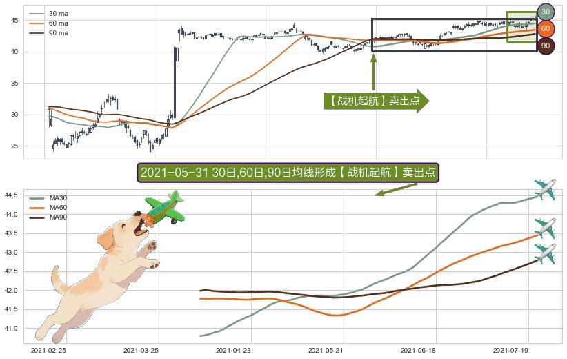 ⚀ 2021-04-08日-2021-07-21日显现 30日-60日-90日均线 【战机起航】卖出点 看空信号,后市看跌,卖出