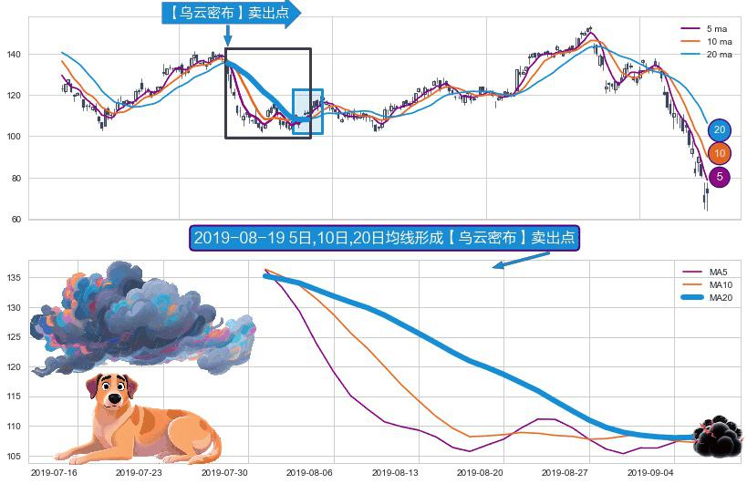 形态多维评估: ⚀ 2019-07-31日-2019-09-06日显现 5日-10日-20日均线 【乌云密布】卖出点 看空信号,后市看跌,卖出