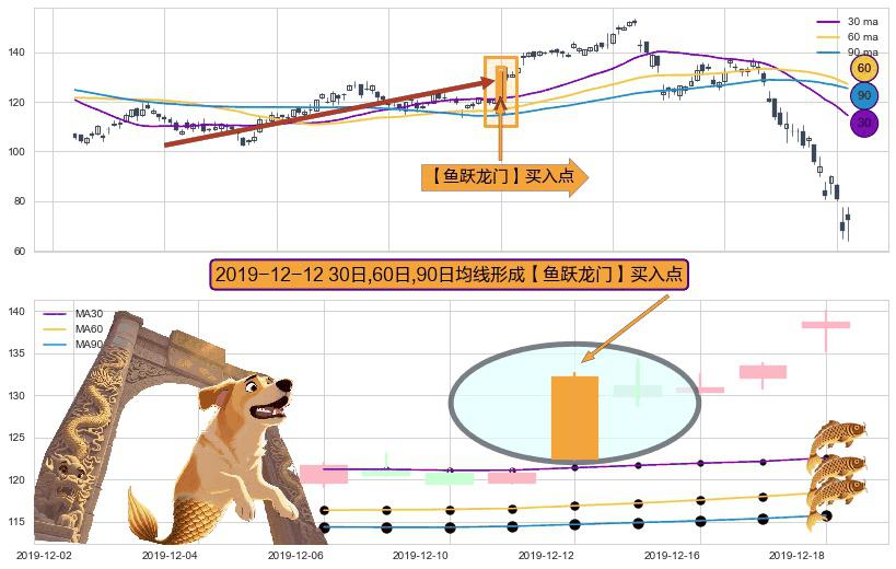 形态多维评估: ⚀ 2019-12-12日显现 30日-60日-90日均线 【鱼跃龙门】买入点 看多信号,后市看涨,买入