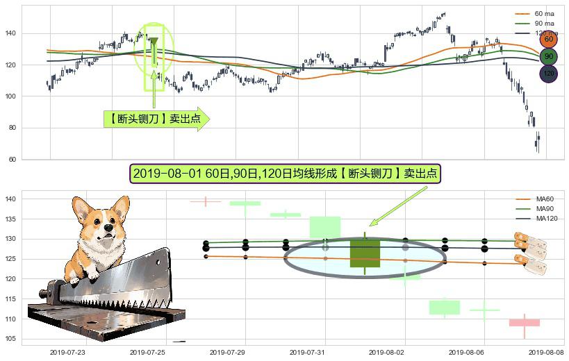 形态多维评估: ⚀ 2019-08-01日显现 60日-90日-120日均线 【断头铡刀】卖出点 看空信号,后市看跌,卖出