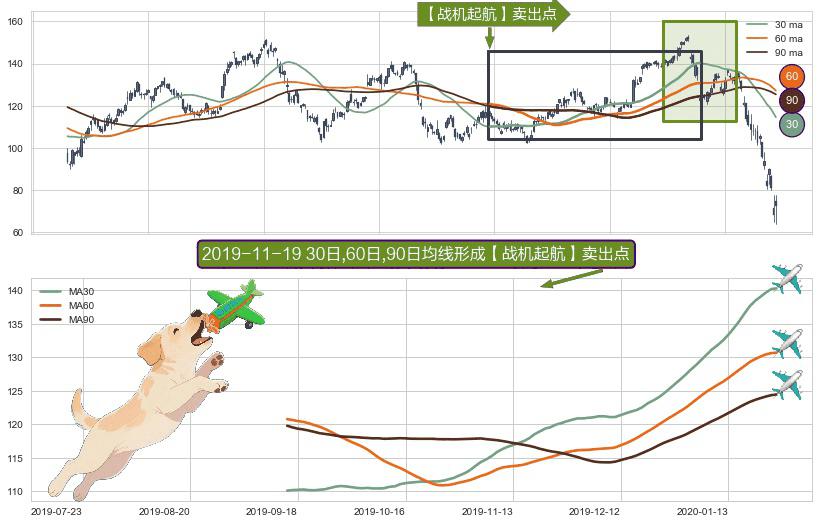 形态多维评估: ⚀ 2019-09-16日-2020-01-27日显现 30日-60日-90日均线 【战机起航】卖出点 看空信号,后市看跌,卖出