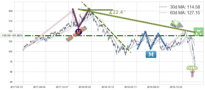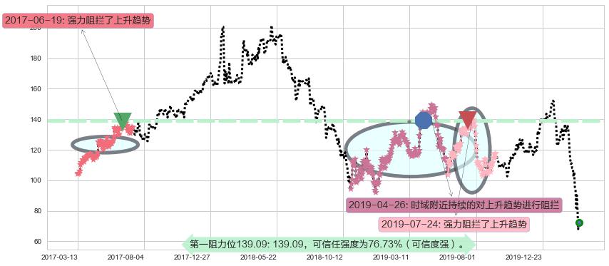 ♘ 阻力价格位139.09,可信任强度76.73%,距离最后交易2020-03-13形成的收盘价格72.52相差 +91.80%