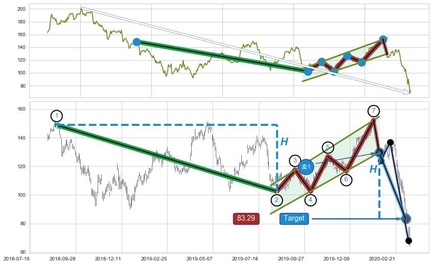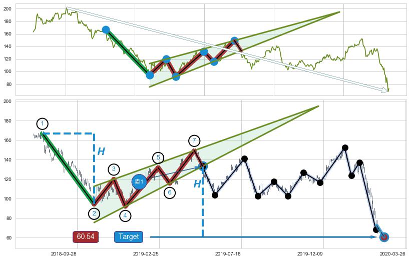 ➣ 最小中继整理跌幅→𝐇: 58.03 (上平行阻力线与下平行支撑线的垂直距离)