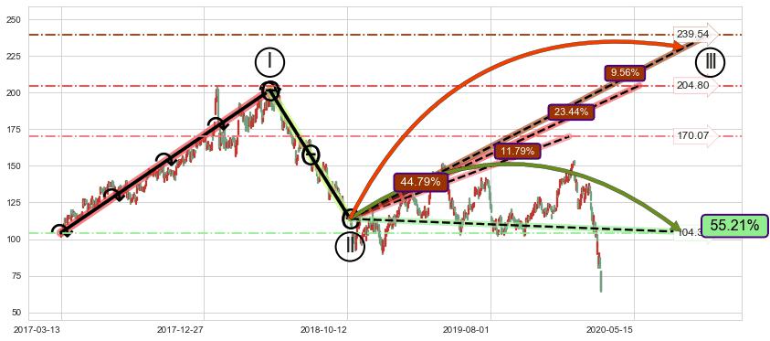 ➣ 循环浪继续向上【平均值】位置(2020-05-27, 204.80),匹配聚类样本比例52.33%, 可能性概率23.44%