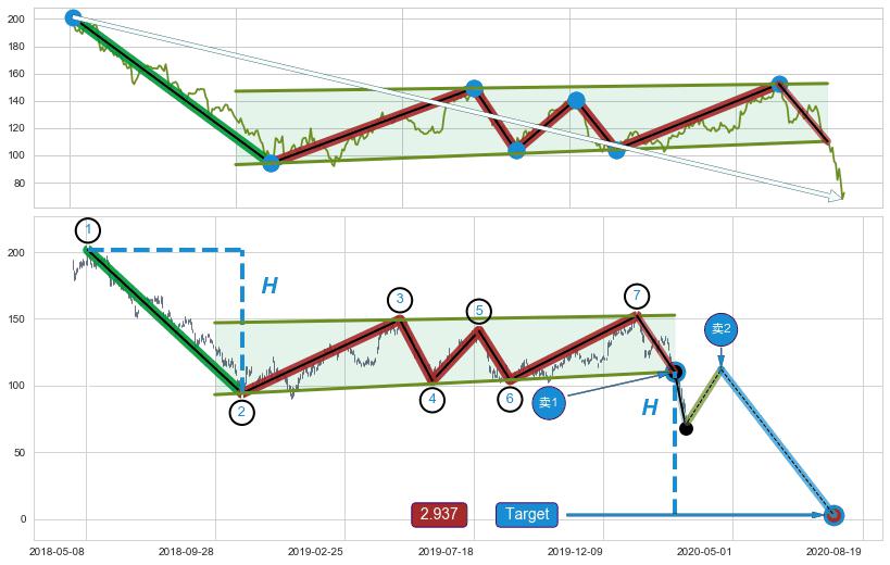 ➣ 最小中继整理跌幅→𝐇: 107.33 (𝐇旗杆的长度:旗杆起点→顶点)
