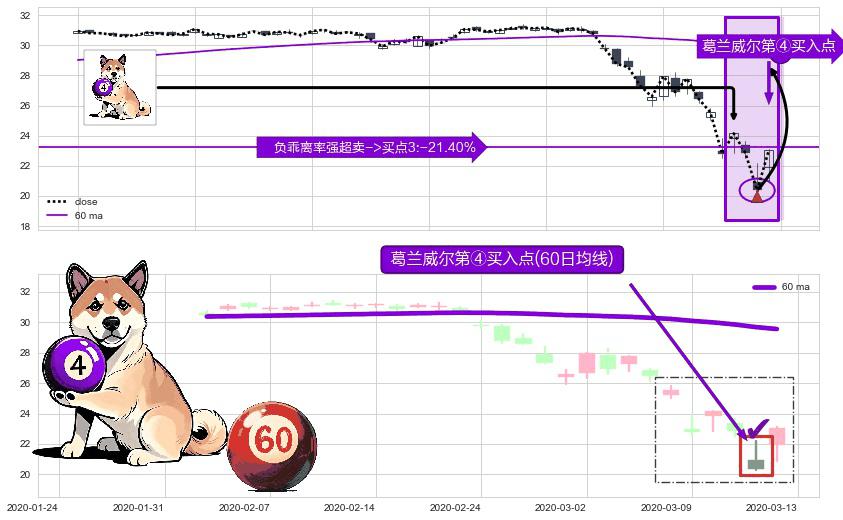 ⚀ 2020-03-12-日显现 葛兰威尔均线 60日均线 第④买入点 下降趋势均值回复的短线反弹信号,后市看涨,买进信号