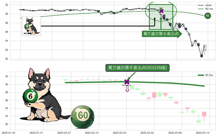 ⚀ 2020-02-24-日显现 葛兰威尔均线 60日均线 第⑥卖出点 走势反转见顶信号,后市看跌,卖出信号
