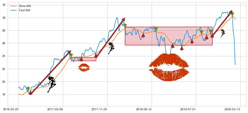 2018-03-22至2019-10-14 慢线与快线多次接触,存在上下穿越,有缠绕